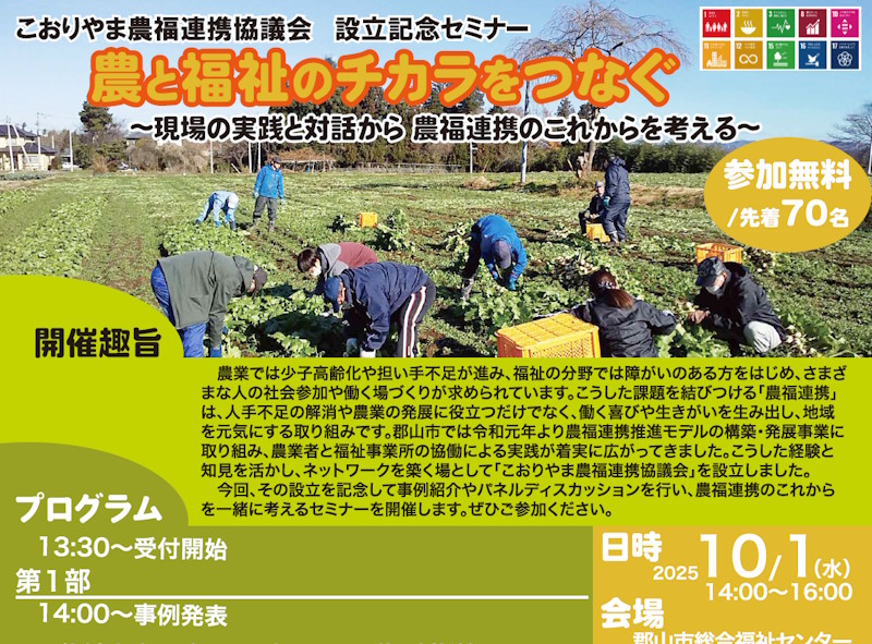 こおりやま農福連携協議会はこのたびセミナーを開催する運びとなりました。